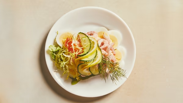 Æg & rejer med hjemmerørt mayo, citron, frisk grønt og urter.